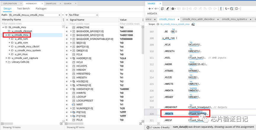 step7: 如下图所示,HRDATA在文件cmsdk_ahb_ram_beh.v中,rdata_out0/1/2/3中的数据又被ahb总线读走了。