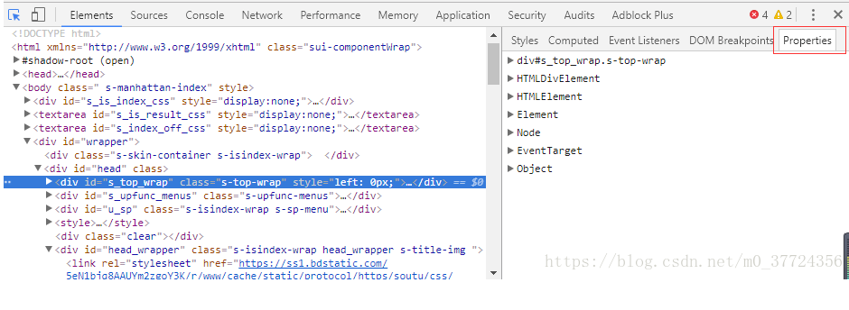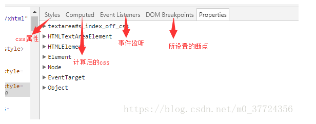 查看元素属性:可从被定位的源码中查看部分,如class、src,也可在右边的侧栏中查看全部的属性,如下图位置查看