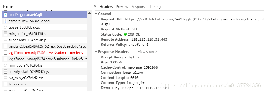 网络(Network):网络页面主要用于查看header等与网络连接相关的信息。