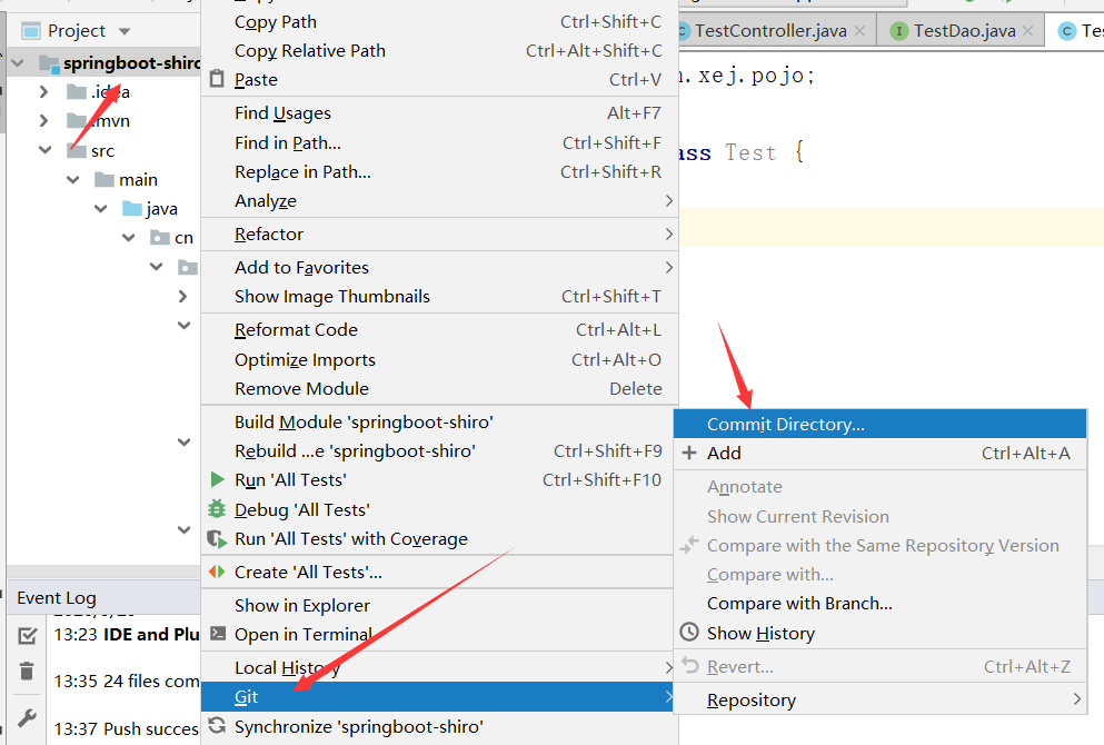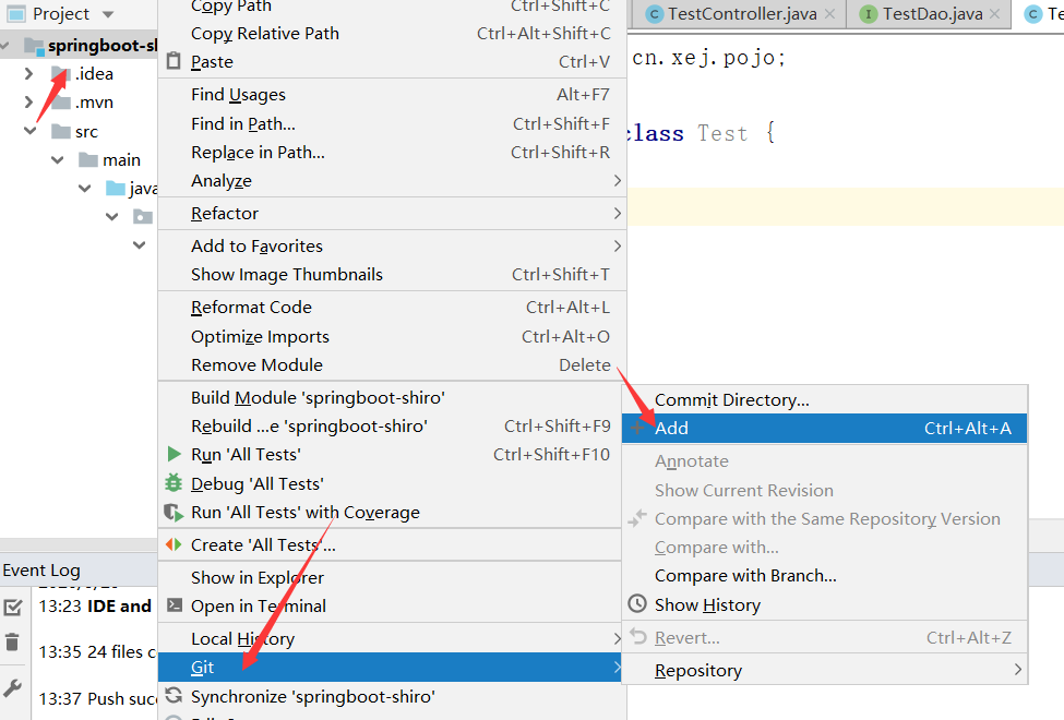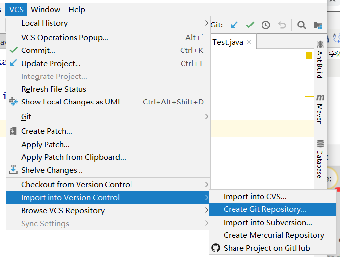 点击VCS --》 Import into Version Control --》Create Git Repository..