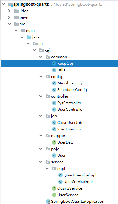 执行顺序为: UserController --》UserServiceimpl --》QuartzServiceimpl --》(等待自定义开始日期到达然后执行自定义的Job)StartUserJob