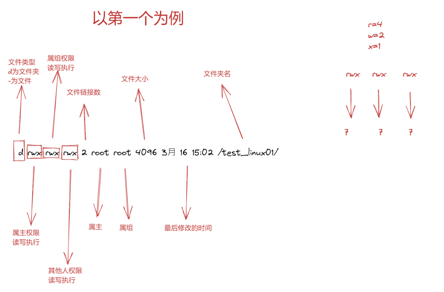 数字表示法: r=4 w=2 x=1
