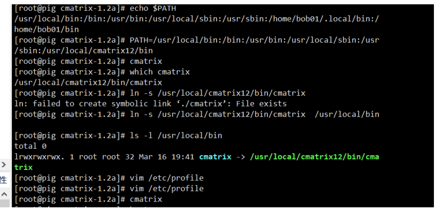 ln -s /usr/local/cmatrix12/bin/cmatrix /usr/local/bin