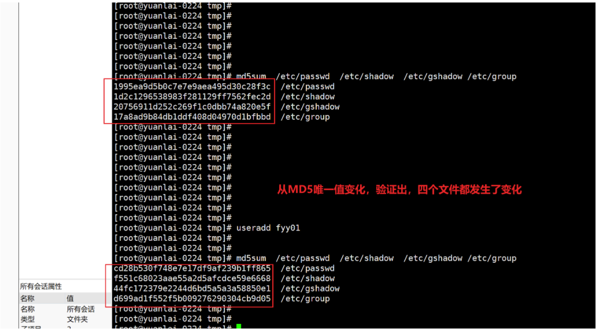 md5sum /etc/passwd /etc/shadow /etc/gshadow /etc/group