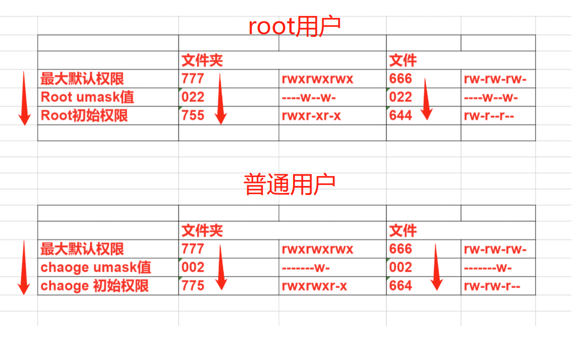 1.umask作用:限制新创建文件夹或者文件的权限,防止创建出来权限过大而造成的安全性问题。