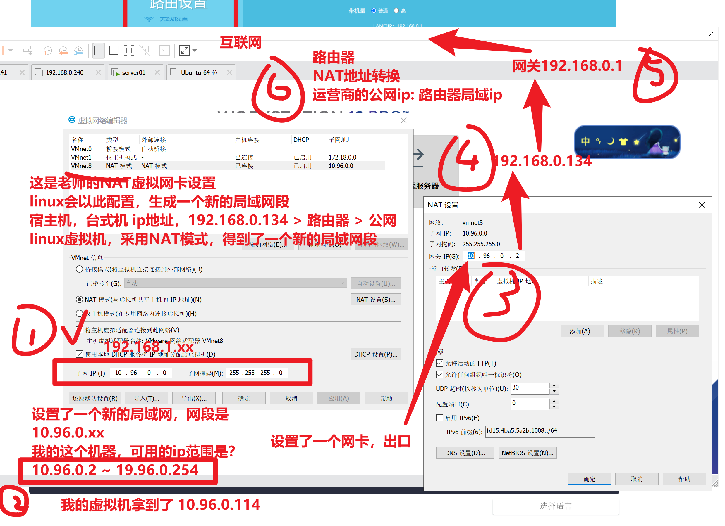 你的linux采用桥接,等于你去这个路由器分配的局域网中,拿走一个ip,等于教室多了一个学生