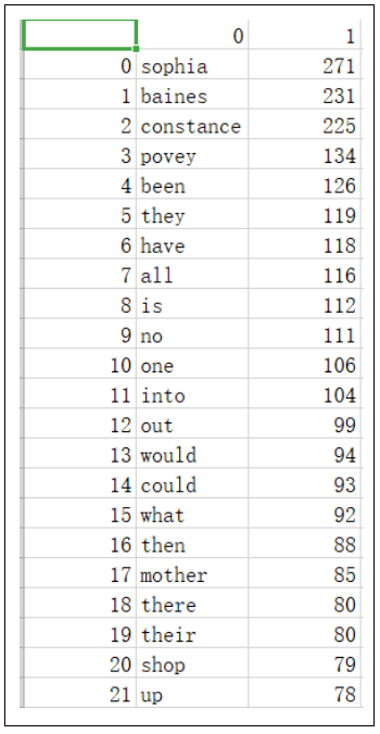 exclude={'the','and','of','to','a','in','was','she','her','had','that','it','with','i','mr','but','by','said','be','were','which','from','which','this','an','on','he','for','you','as','his','not','at','mrs'}#定义数组
