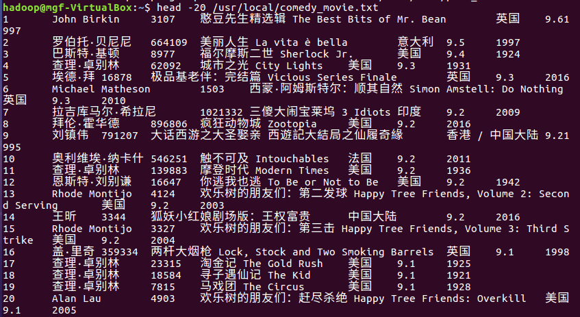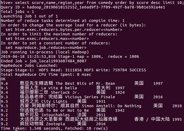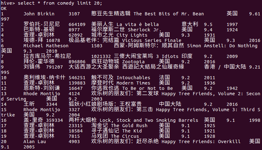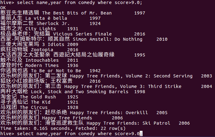 查看喜剧电影高分的电影名和年份,可以根据最近的年份选择自己喜欢的喜剧电影