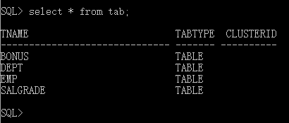 SQL>select * from tab;