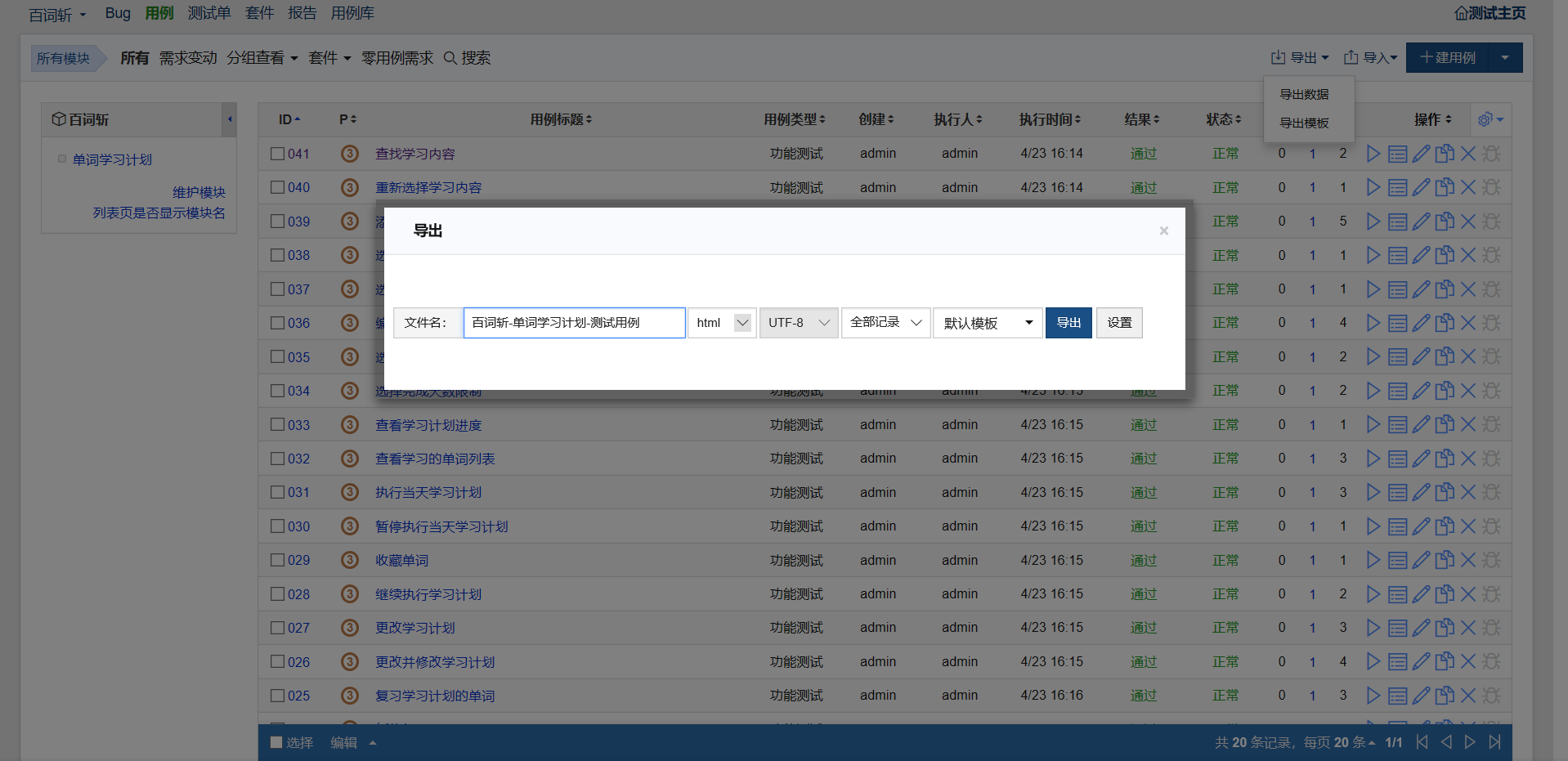 选择单词词数限制与选择天数限制两个用例使用了边界值测试,测试时挑选完成天数的最大最小值与背单词数的最大最小值进行测试。