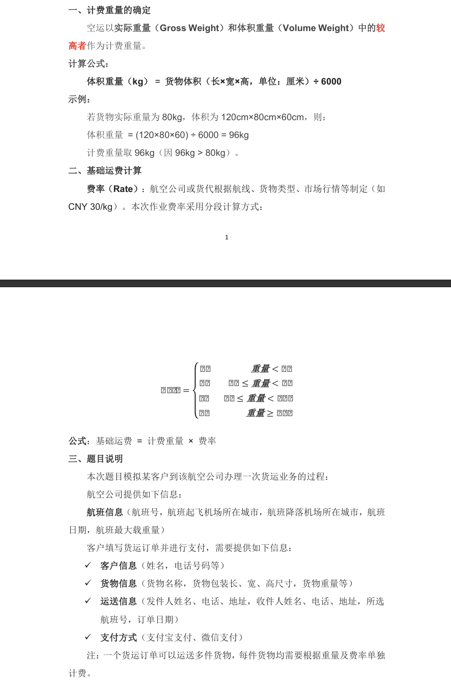 在 Cargo 类的 calculateVolumeWeight 方法中添加注释,说明公式来源(如 “根据航空货运标准,体积重量 = 长 × 宽 × 高 / 6000”)。