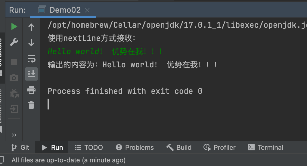 以Enter为结束符,即nextLine()方法返回的是输入回车之前的所有字符。