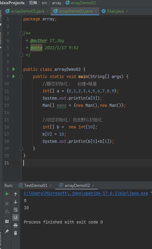 Man[] mans={new Man(1,1),new Man(2,2)};