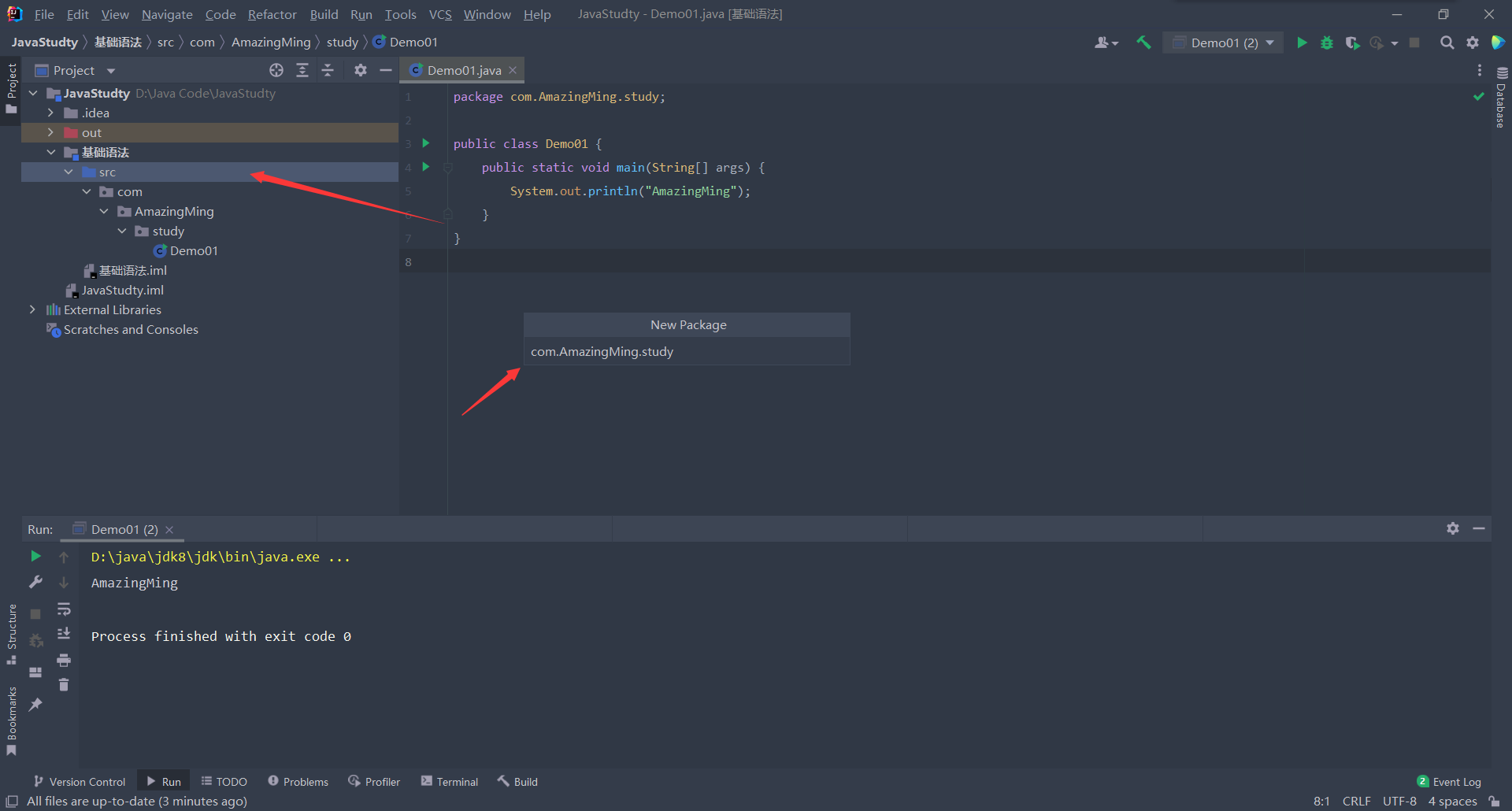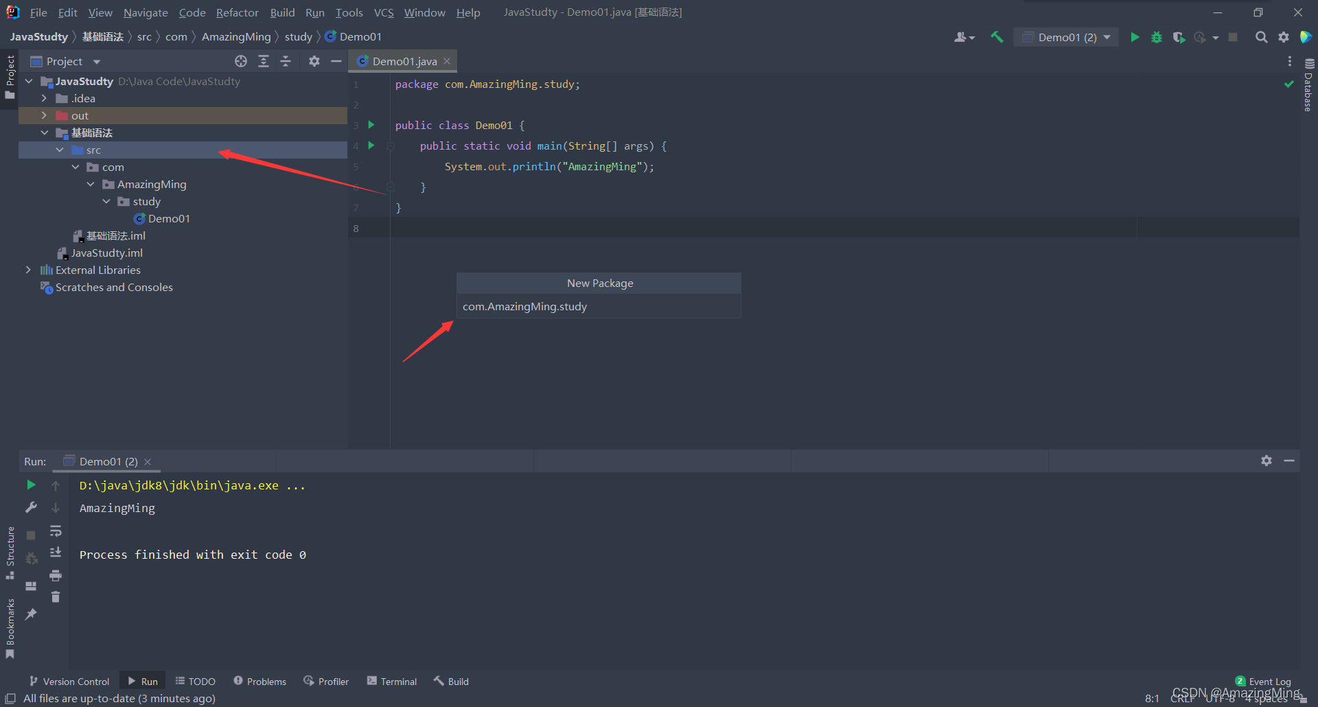 ①右键src文件,new一个package,取名为com.AmazingMing.study