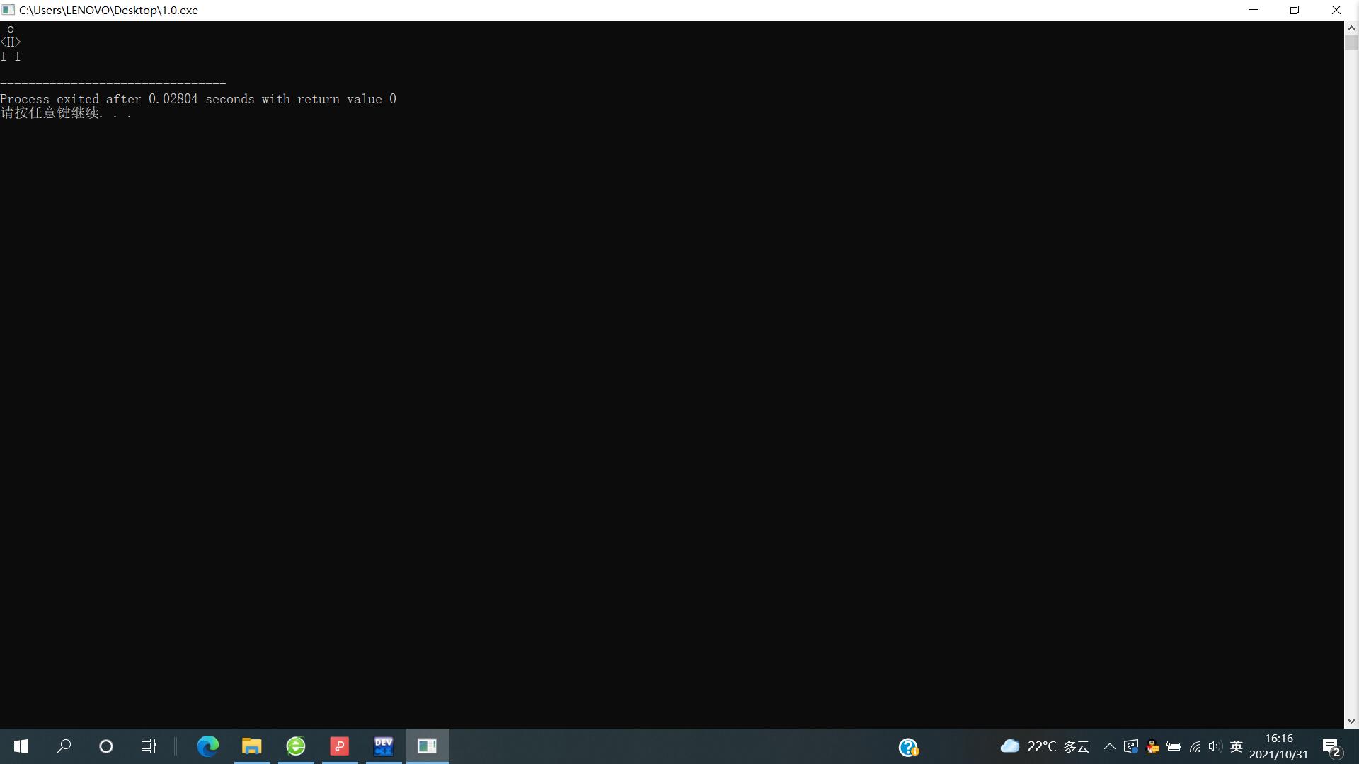 #include<stdio.h> int main() { printf(" o\n"); printf("<H>\n"); printf("I I\n"); return 0; }