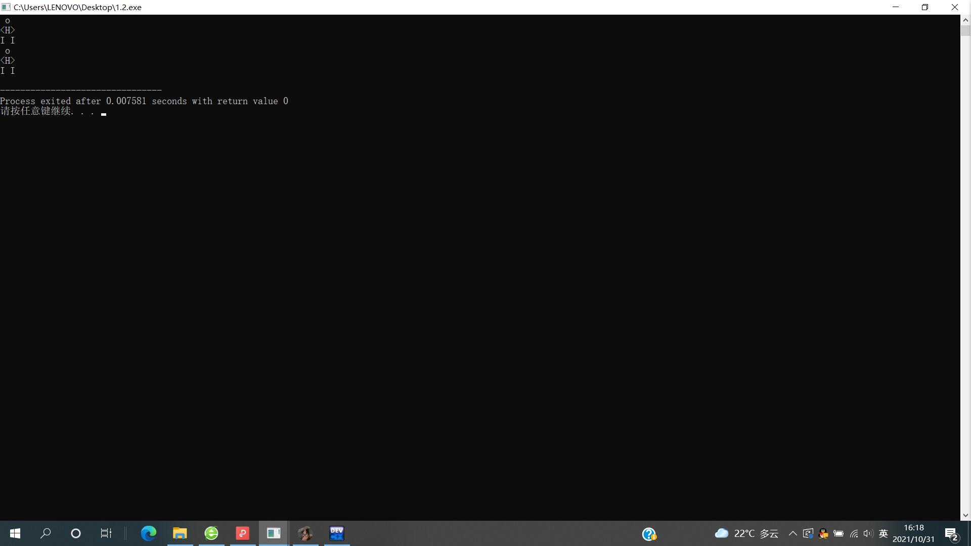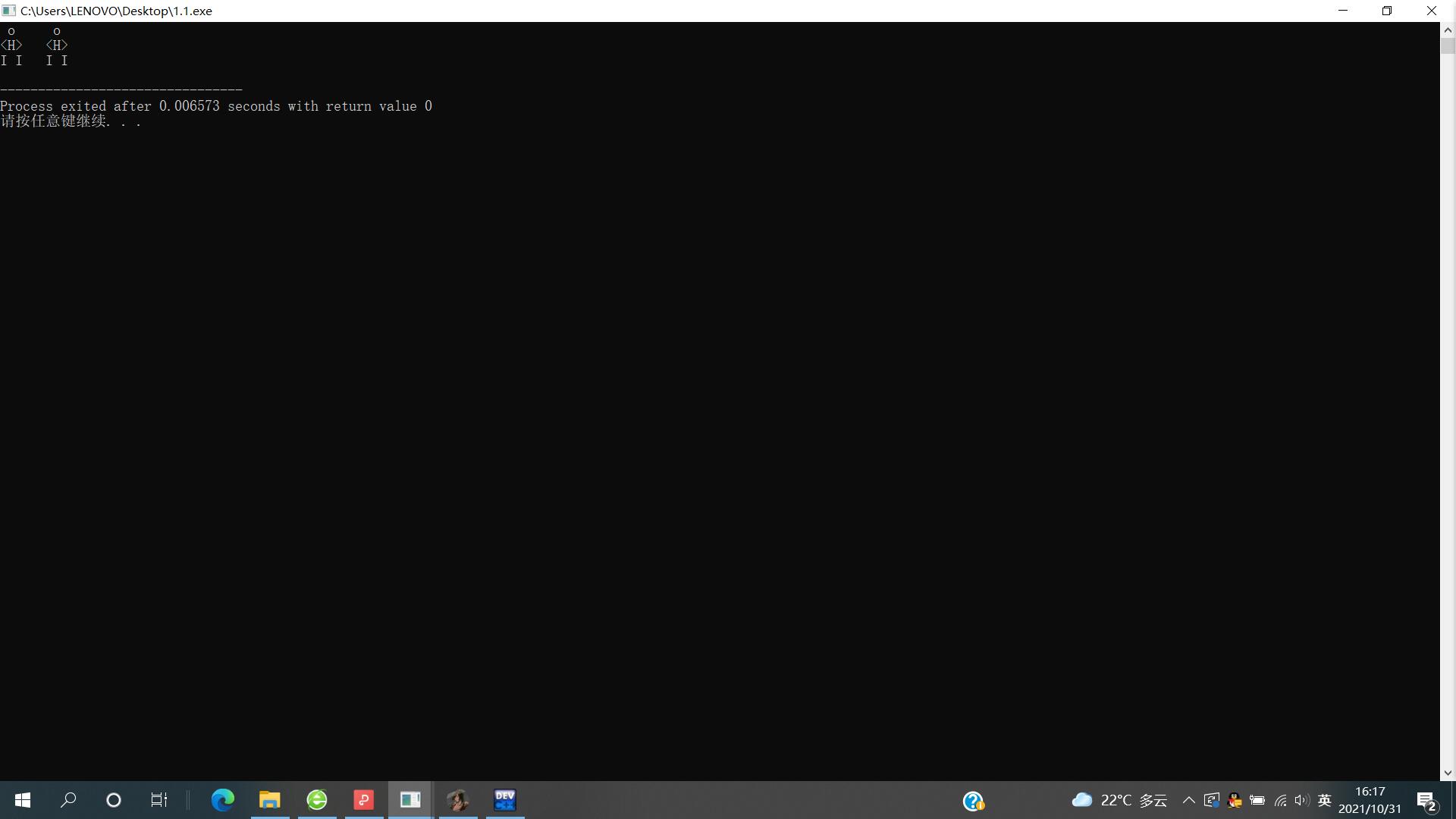 #include<stdio.h> int main() { printf(" o\n"); printf("<H>\n"); printf("I I\n"); printf(" o\n"); printf("<H>\n"); printf("I I\n"); return 0; }