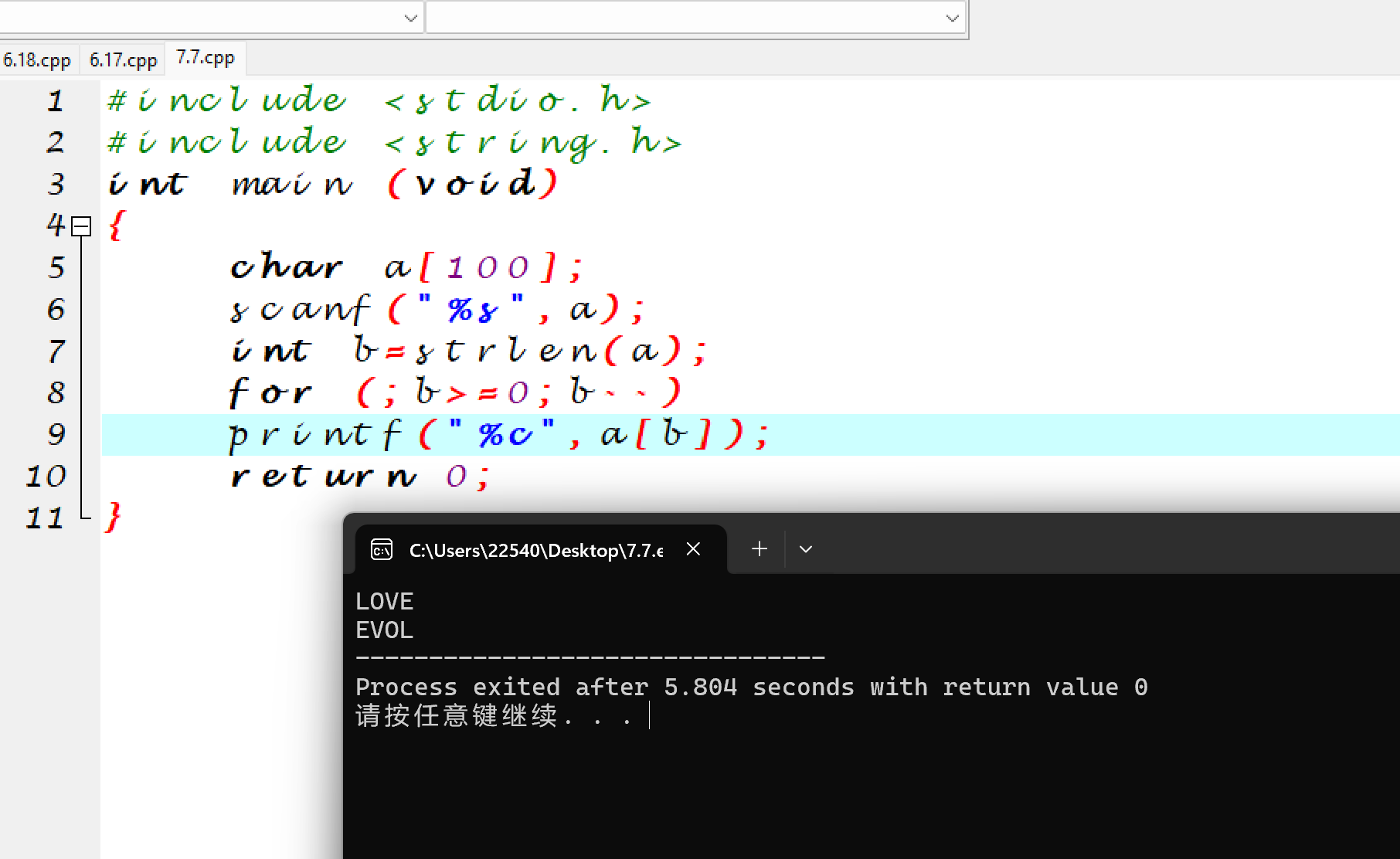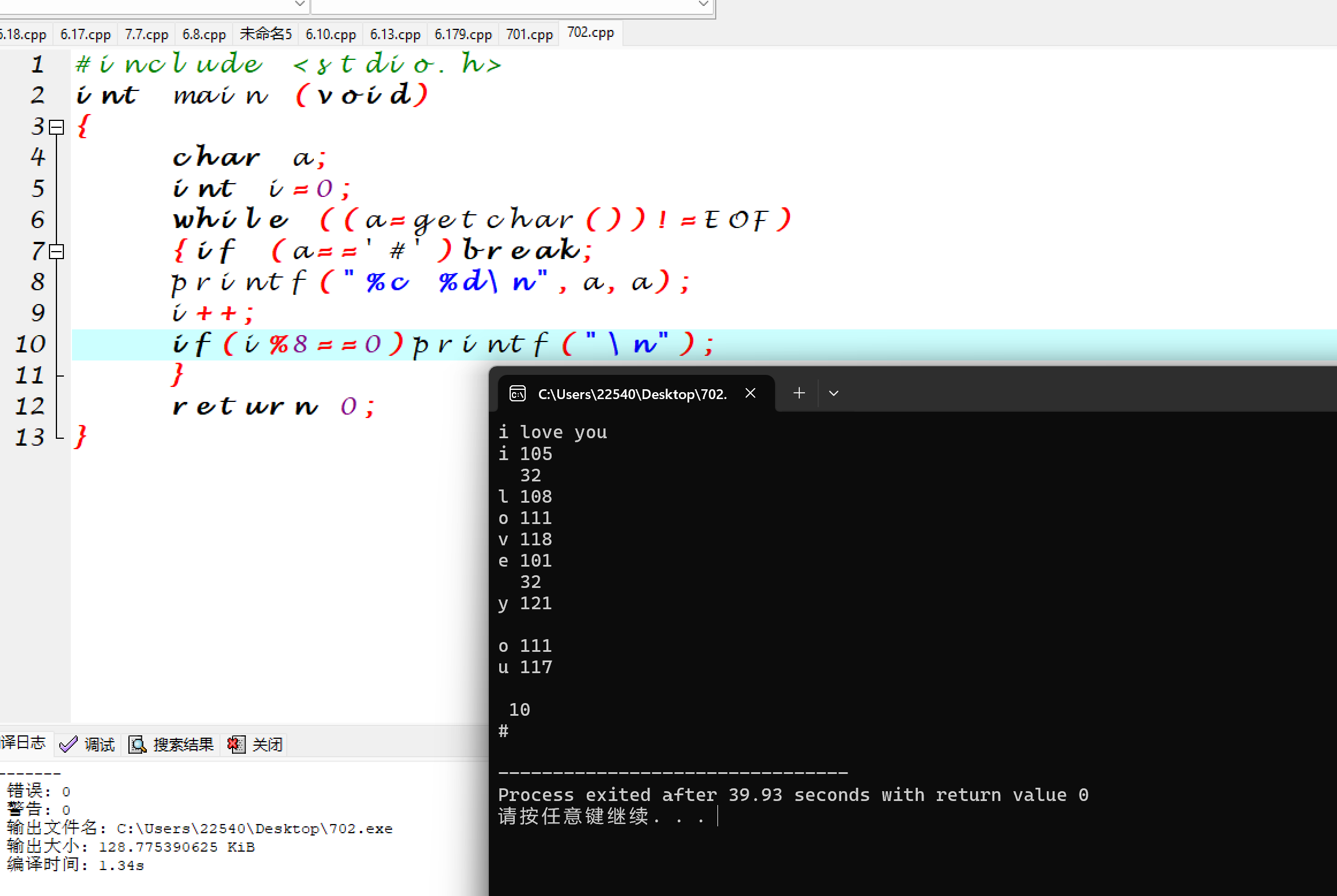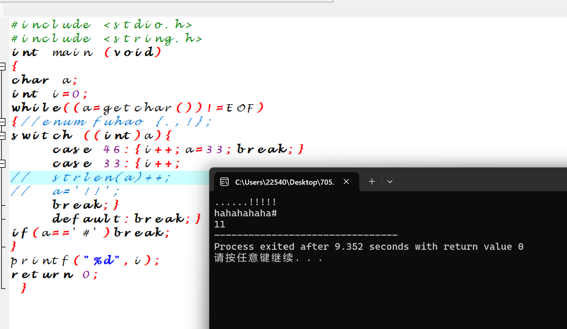 学到了巧妙的方法判断双字符并报告次数,使用getchar函数逐个读取输入字符,通过比较当前字符和前一个字符来统计"ei"的出现次数。