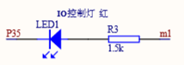 图中,m1接高电平,P35接单片机P35接口。LED小灯的两端,需要有一个电压差才能亮起来。故,当P35为低电平时,两端存在电压差,LED导通,发光。因此,这里用C语言代码可以使得小灯亮灭:"P35=0;"小灯亮,"P35=1;"小灯灭。