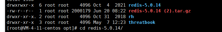使用tar -zxvf redis-5.0.14 (2).tar.gz命令解压