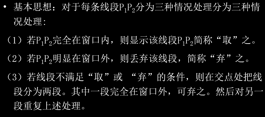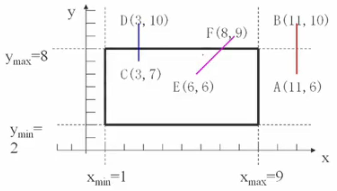c) 对于其他情况采取中点分割法(Cohen-SutherLand、Liang-Barskey裁剪算法_哔哩哔哩_bilibili)