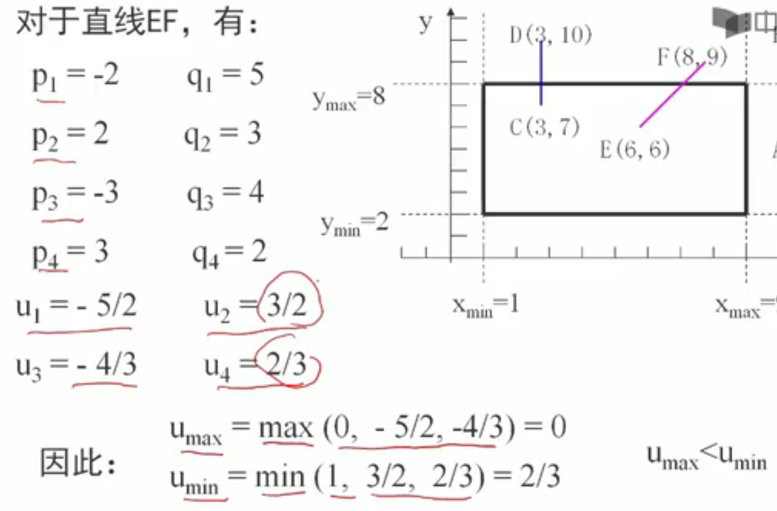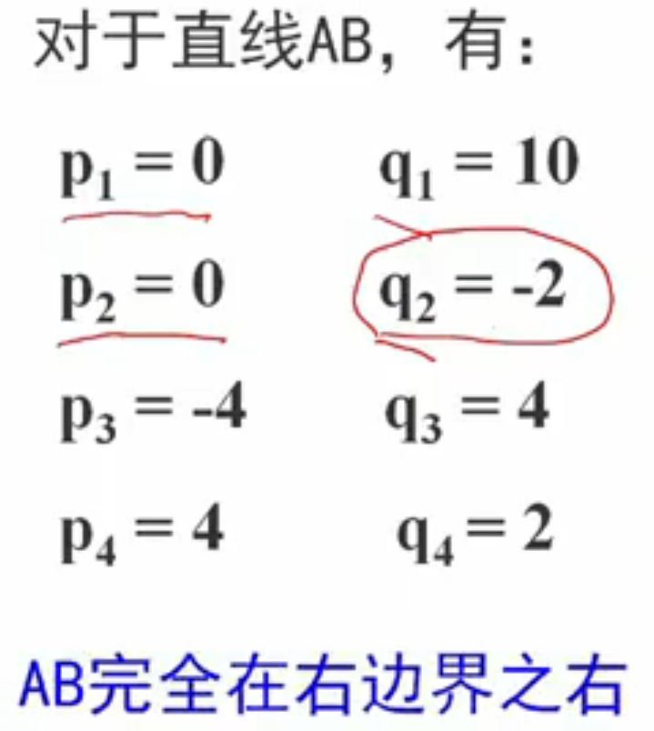 1.Δx=0,p1=p2=0,若q<0,转裁剪步骤