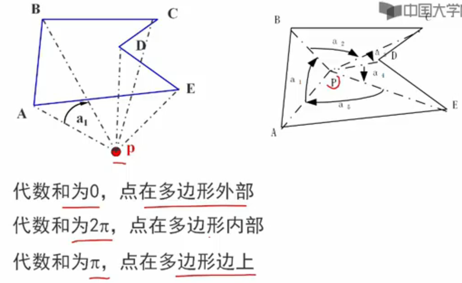 - 前向面,后向面和法向量的位置关系,如果矢向量和法向量的点积小于0,面是可见面——V·N<0 多边形为前向面