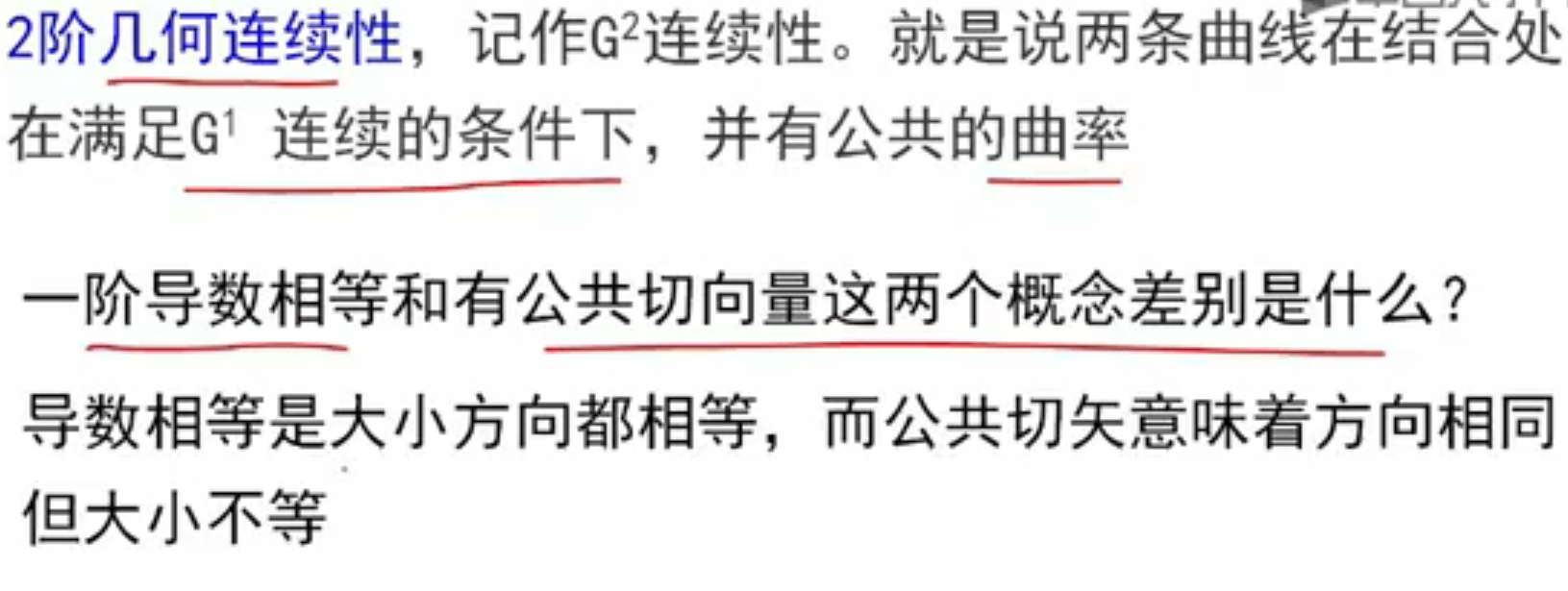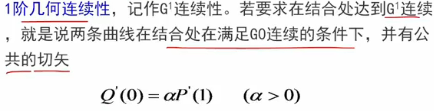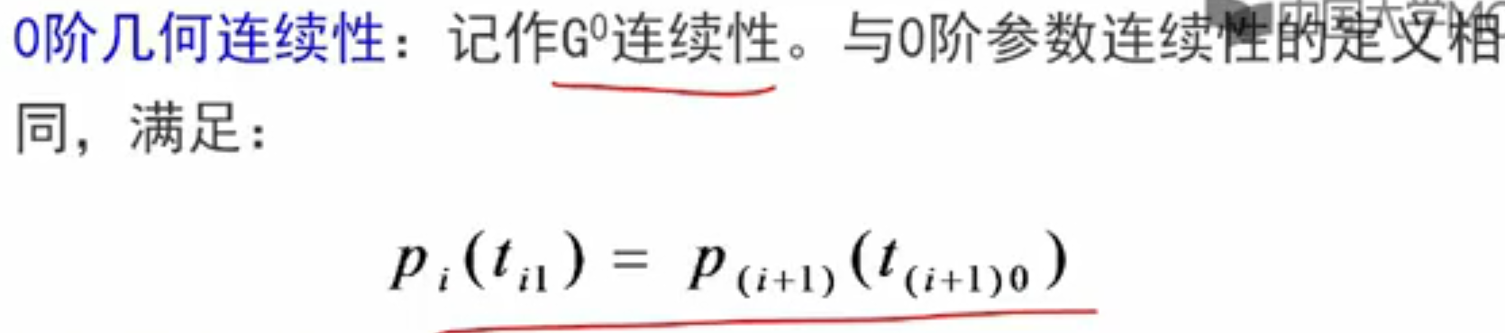 ② 几何连续性:组合曲线在连接处满足不同于C的n次方的某一组约束条件,称为具有n阶几何连续性,简记为G的n次方