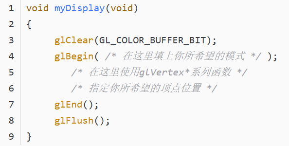 a) void glFlush() :让前面的OpenGL绘制命令开始执行,这样可以保证绘制在有限短时间内完成