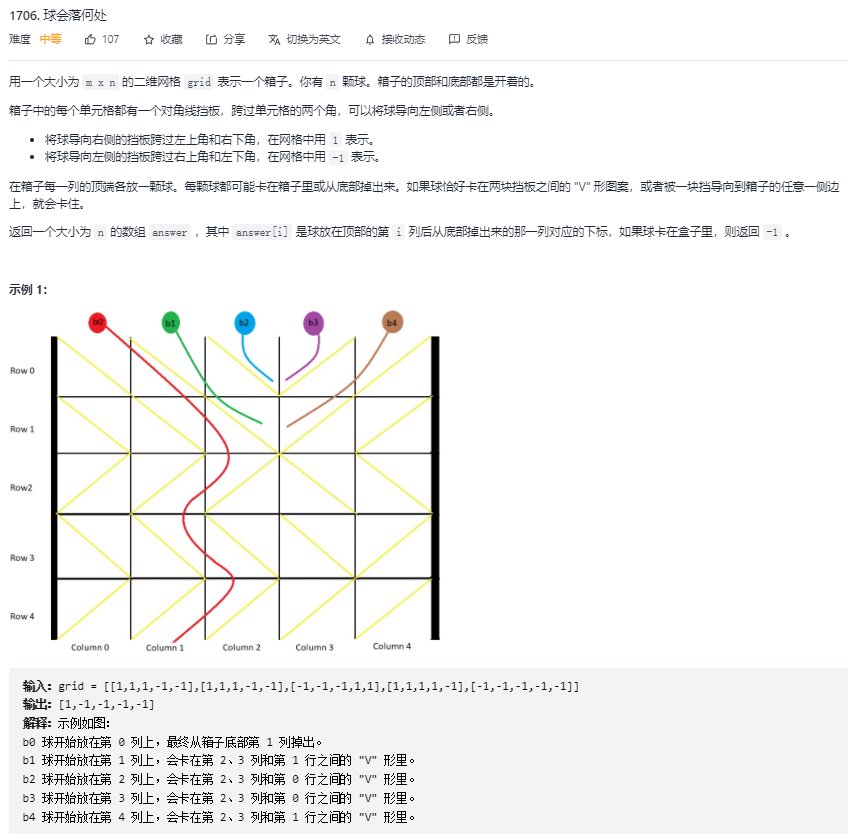 一开始也没啥好思路,就是想着暴力解,遍历一下 每个小球的下落路径就行,区分一下情况。
