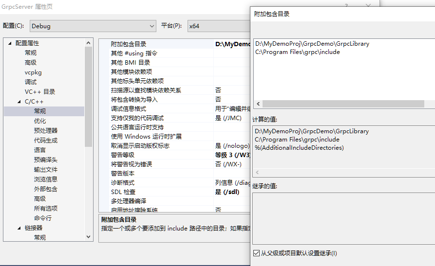 C:\Program Files\grpc\include (编译gRPC时,默认安装到C:\Program Files\grpc)