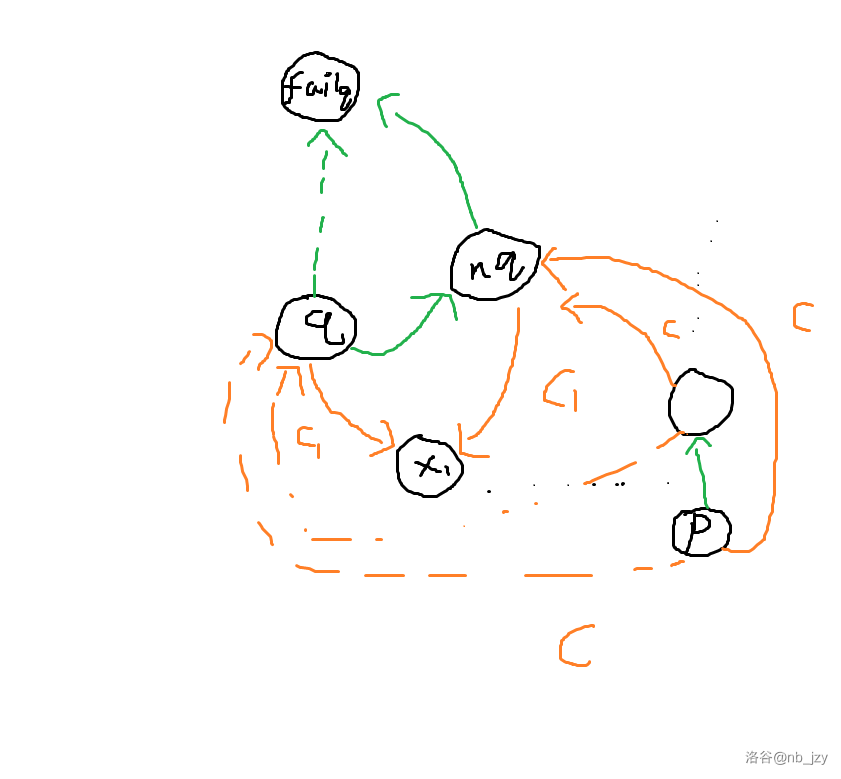 当然还有 fail 边,其连接的是当前状态到在另一个集合内的最长后缀的集合。