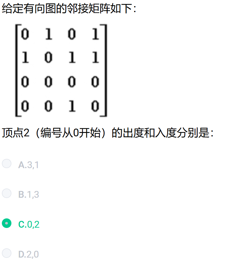 出度:第三行(编号2)均为0,所以出度为0.