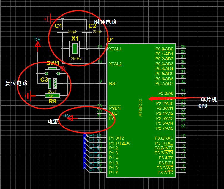 对51系列单片机来说,最小系统一般应该包括:CPU、时钟电路、复位电路,电源。