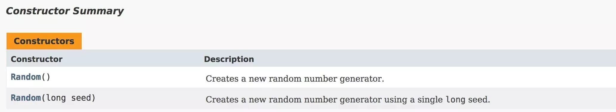 Java API中提供了两个构造方法来创建一个Random对象。如下图所示: