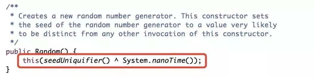 无参构造底层调用的也是有参构造,将System.nanoTime()作为参数传递。即如果使用无参构造,默认的seed值为System.nanoTime()。