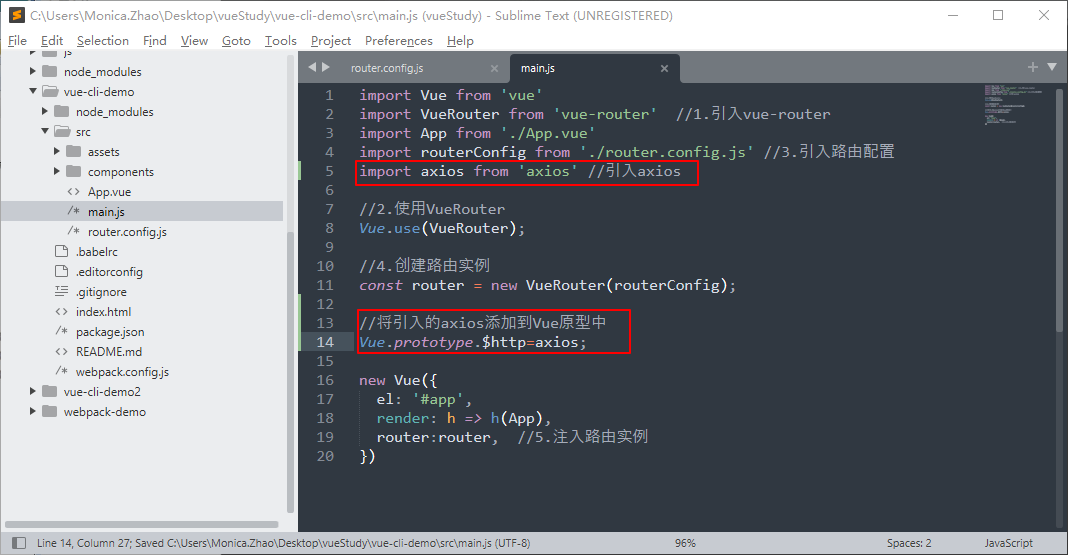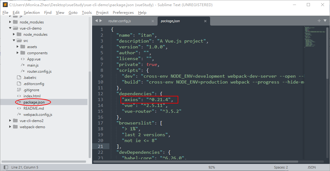 进入项目vue-cli-demo路径, 运行 cnpm install axios -S (安装axios生产依赖)