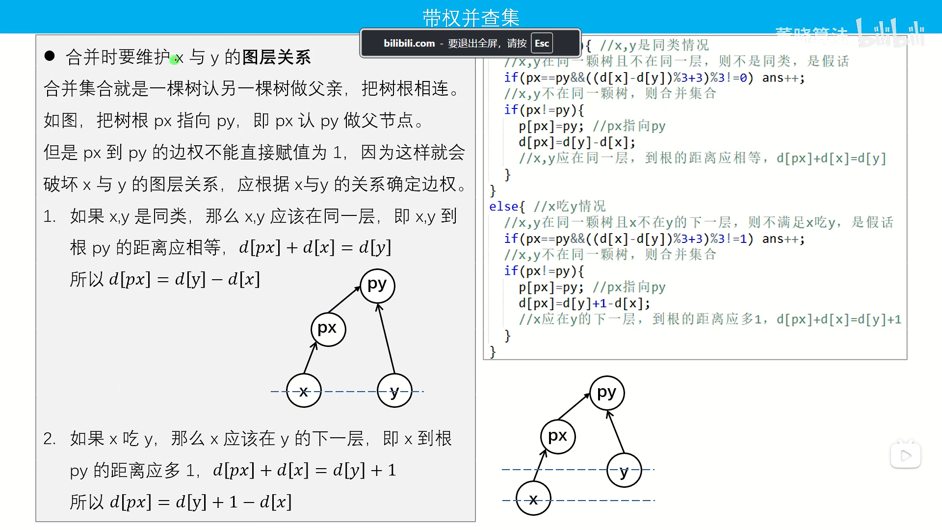 //x应在y的下一层,到根的距离应多1,d[px]+d[x]=d[y]+1