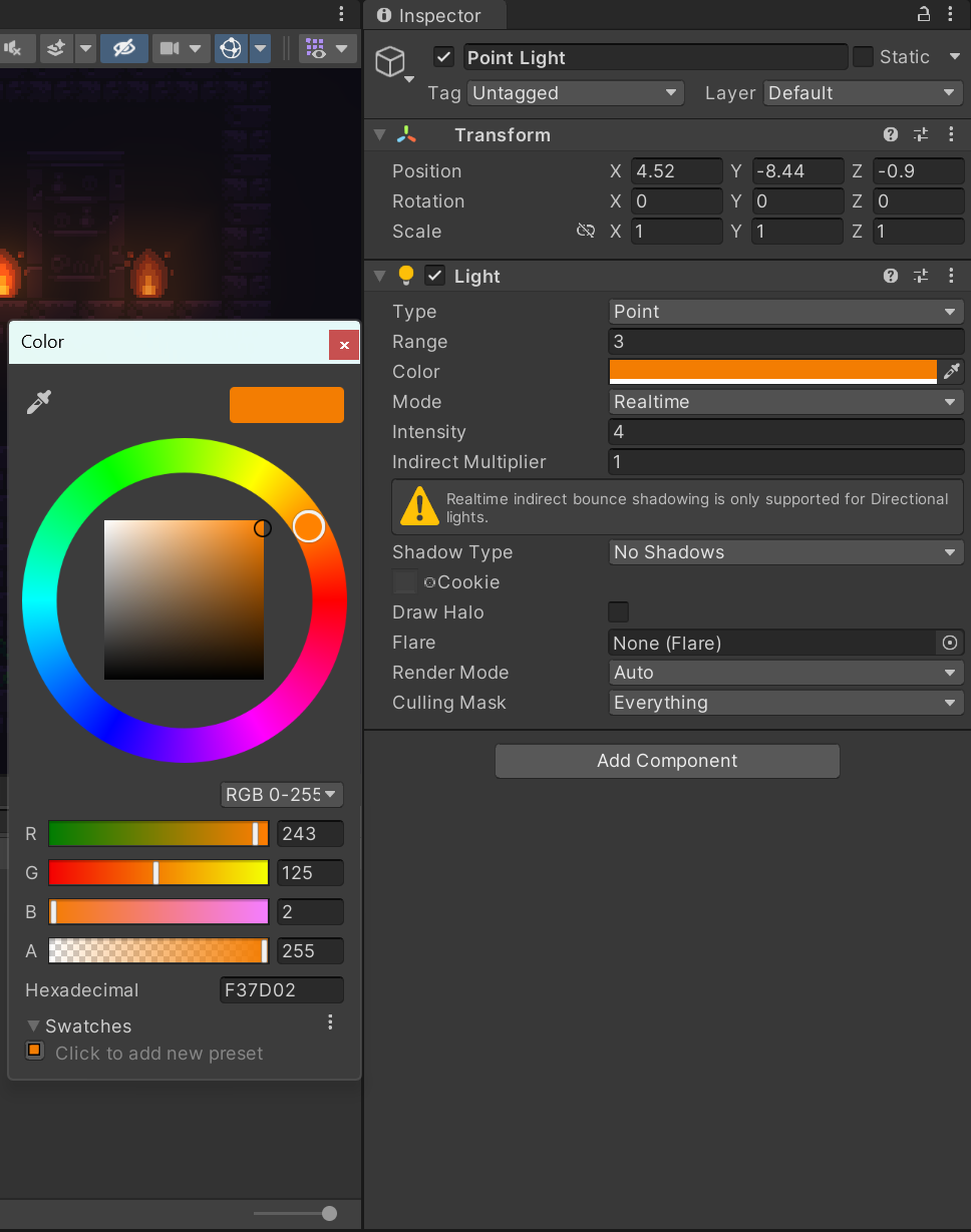 由于我在处理角色转向的逻辑时,使用的时旋转,而点光源作为子物体也会跟着旋转,
