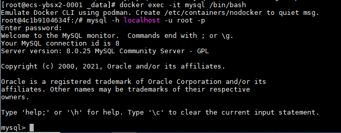 因为是用docker安装mysql,所以需要先进入到容器内部,再输入以下代码