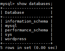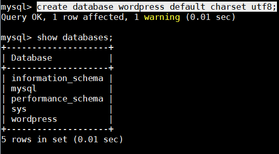 mysql> create database wordpress default charset utf8;