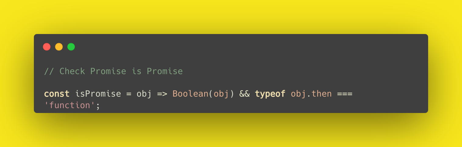 const isPromise = obj => Boolean(obj) && typeof obj.then === 'function';