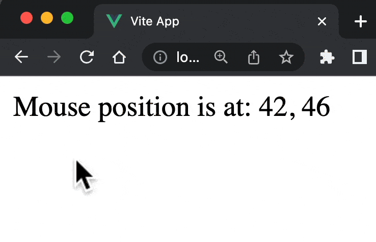 composable allows us to easily reuse all of this logic. With very little extra code, we’re able to grab the mouse coordinates in our component.