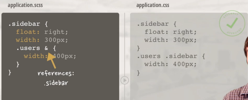 .sidebar{ float: right; width: 300px; .users &{ width: 400px; } }