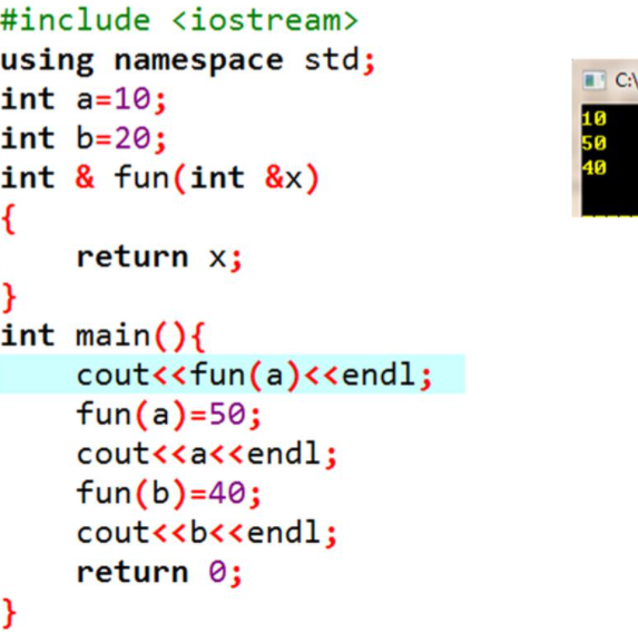 函数的返回值是一个引用,所以可以作为赋值语句中的左值使用。