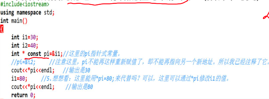 2)如果唯一const位于符号*右侧(int * const p = &a;),表示指针本身是常量,不能让该指针指向其他内存地址;指针所指的数据可以通过本指针进行修改。