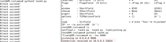 Task 4: Creating Reverse Shell using TCP Session Hijacking