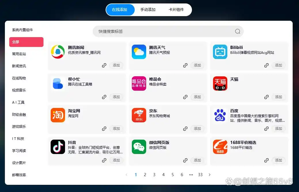 1、添加网站:插件内置了常用网站,一键添加。