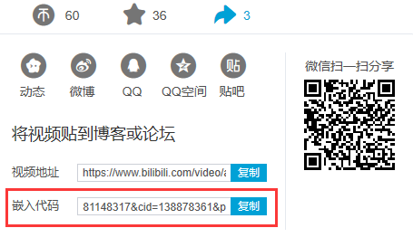 到B站的iframe代码: