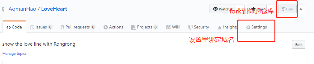 点到我的github,fork这个项目到自己仓库,然后点击setting设置