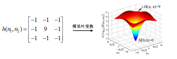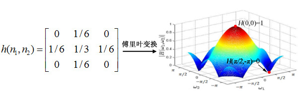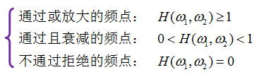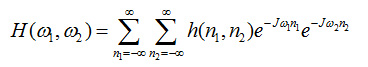 LSI系统冲激响应h(n1,n2)的傅里叶变换就是该系统的频率响应H(ω1,ω2),它给出了系统在频点(ω1,ω2)处的响应特性: